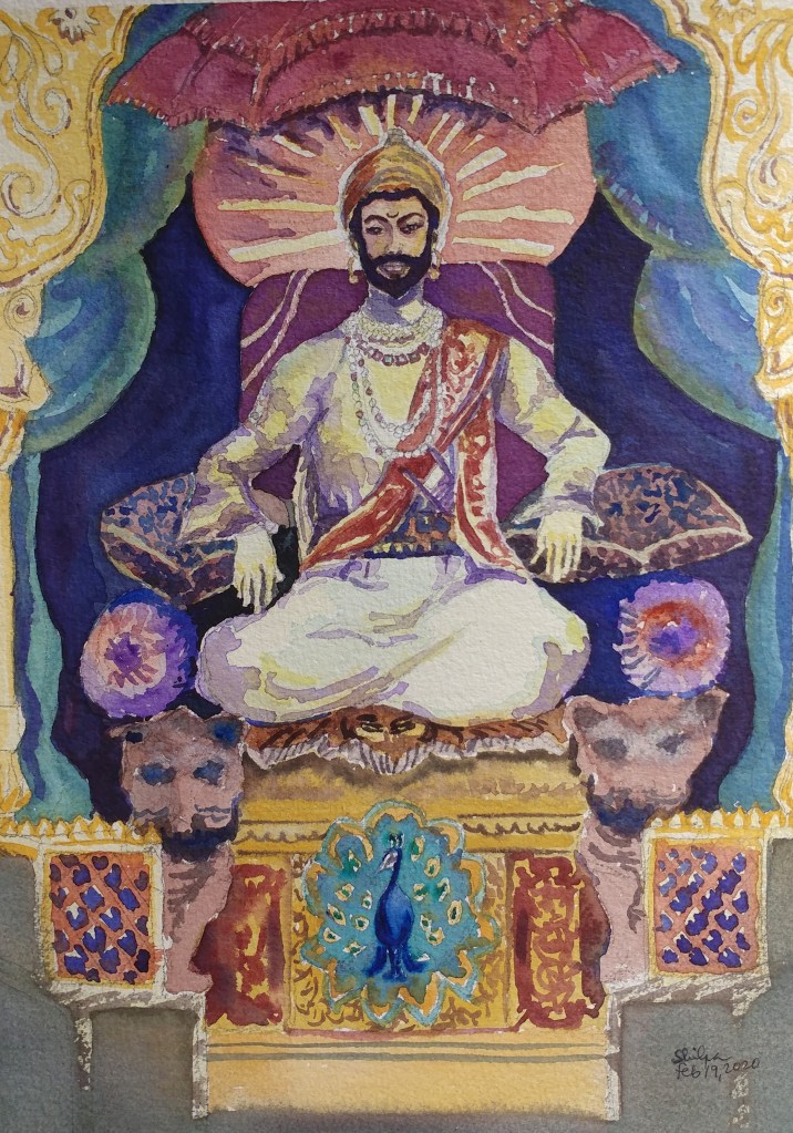 Imagining how a Rajah would look sitting on a throne was a challenge when I painted this figurative of Shivaji Rajah who was a 17th century Maratha ruler in India. I had only a few web references to go by. Having an adoration towards this Rajah helped.