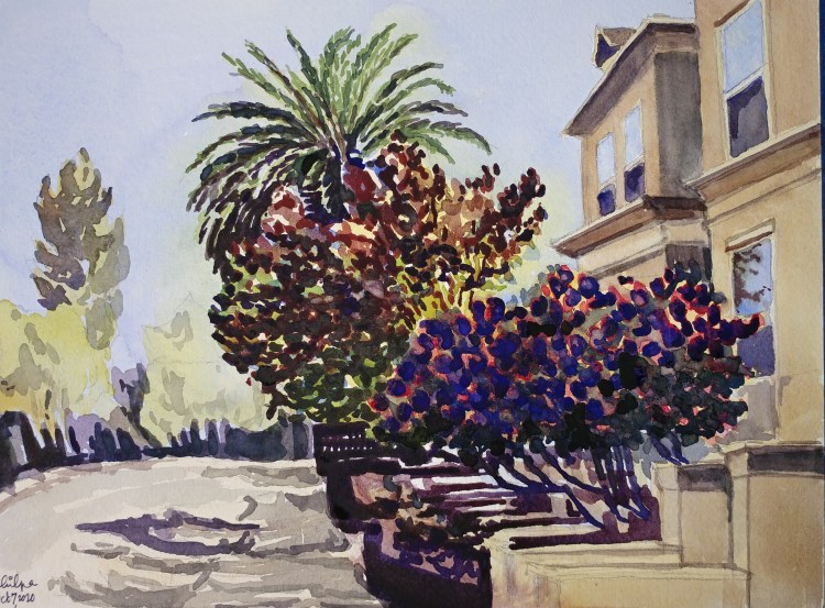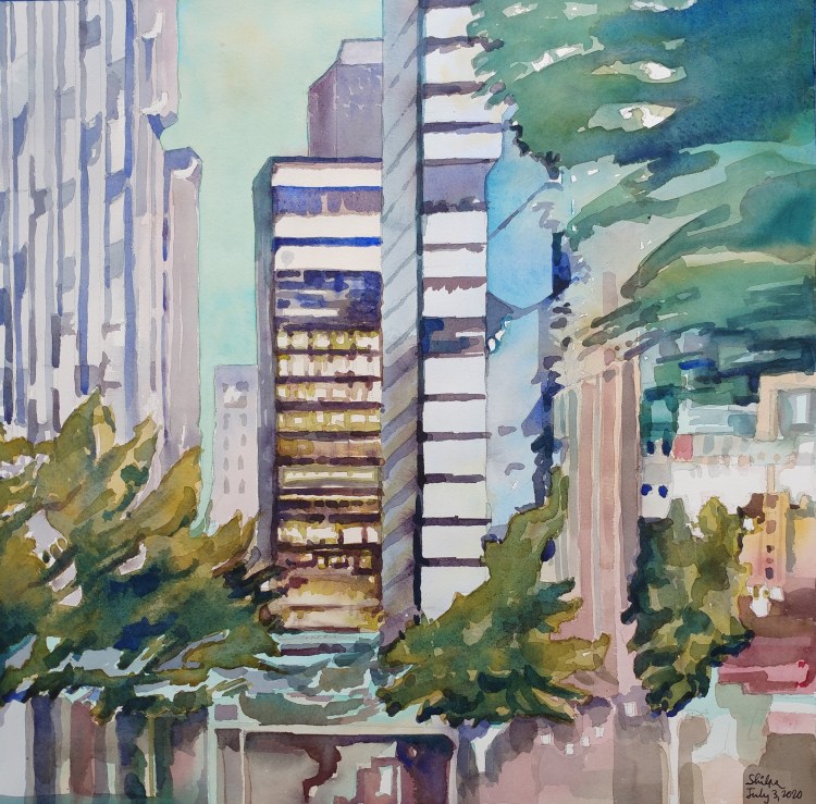 Just two color study I had been meaning to paint. Haze in the afternoon is made striking with watercolors. I love this medium!