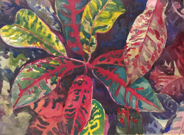 Croton is an ornamental plant that produces leaf colors that range from yellows to pinks and magenta reds and browns. And Crotons have them all in one when planted mixed! It was a great opportunity in this subject to make use of many colors.