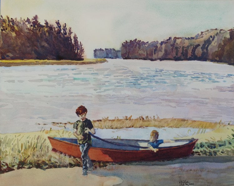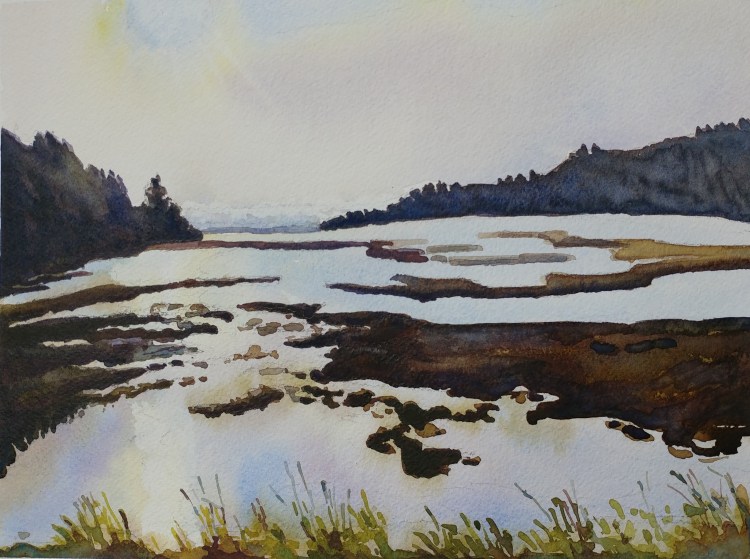 Every now and then I get a bit of a shock when during my painting process, I get a feeling that, what I thought would be an easy project is not turning out to be an easy one. The above painting had large shapes that are easy to paint; but that part didn’t help me. The foreground proved to be a lot harder task because there was the immediate foreground and the ‘slightly further out’ foreground with expert details needed for both!