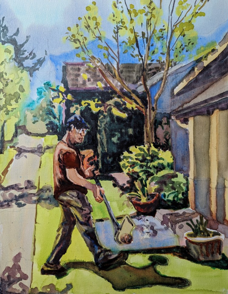 I underwent a lot of thinking process and planning process before I painted this subject. By the second day of the painting process, I was exhausted. But I love the focus on the figures I have achieved. I am hoping the process will become easier for me down the road.