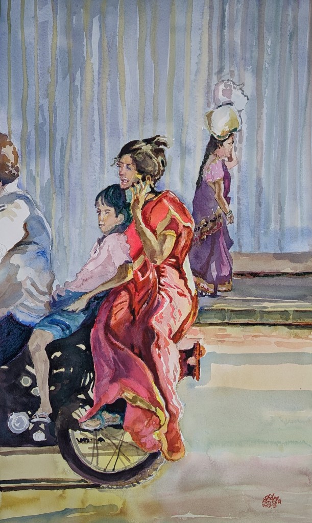 You will not believe me if I say this, but every time I start a new painting, I get so nervous. Just like when we try to ride the bicycle the second time after we learn it. Even after so many years of painting, this anxiety still bothers me. Maybe it happens because of my complicated subjects. But oh well, I am done with this one for now 🙂