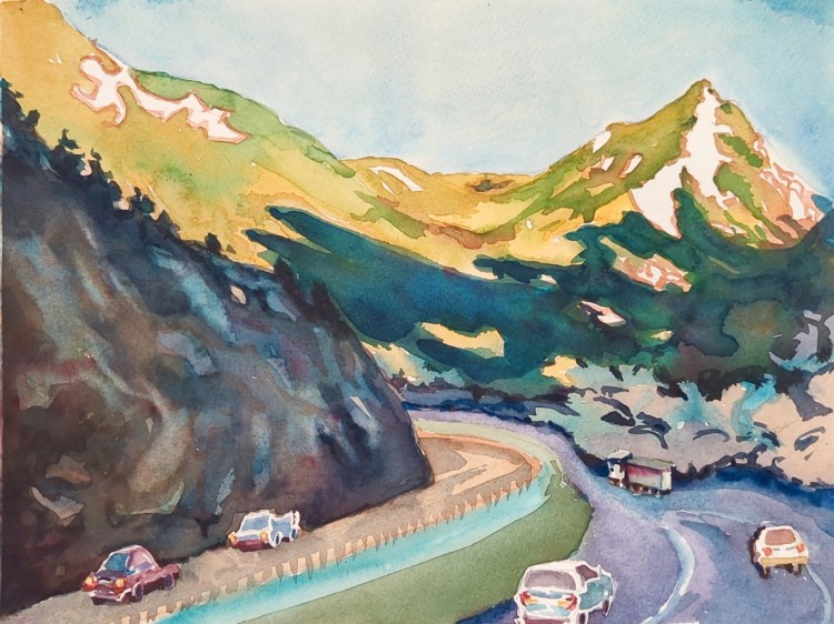 But I still wanted to paint a representation. I decided to focus on getting a good composition, and decided I wanted to use all the pigments I used and still get some details of rocks I wanted to keep. I liked how it turned out, but I am still not sure if what I painted gives a certain ‘feel’ of the mountain I intended at the start of the process.