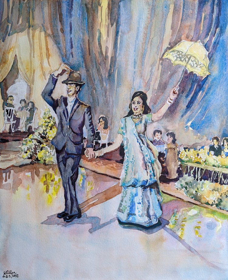 Preoccupied © Shilpa Bhadsavle. Watercolor 17″ X !3″