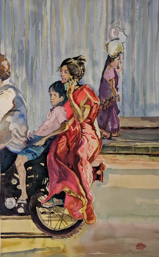 Preoccupied © Shilpa Bhadsavle. Watercolor 17″ X !3″
